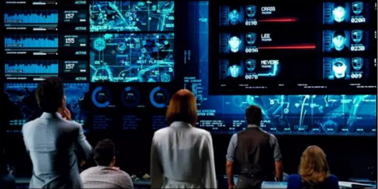 像2015年上映的《侏羅紀(jì)世界》,帶了追蹤器的恐龍和警員在叢林里相互追逐,指揮中心通過大屏實(shí)時(shí)顯示一線警員的位置、生命狀態(tài)、視頻畫面及各類數(shù)據(jù)等信息,快速指揮獵殺恐龍的行動(dòng)(尷尬的是,導(dǎo)演讓恐龍吃掉了大部分警員)。